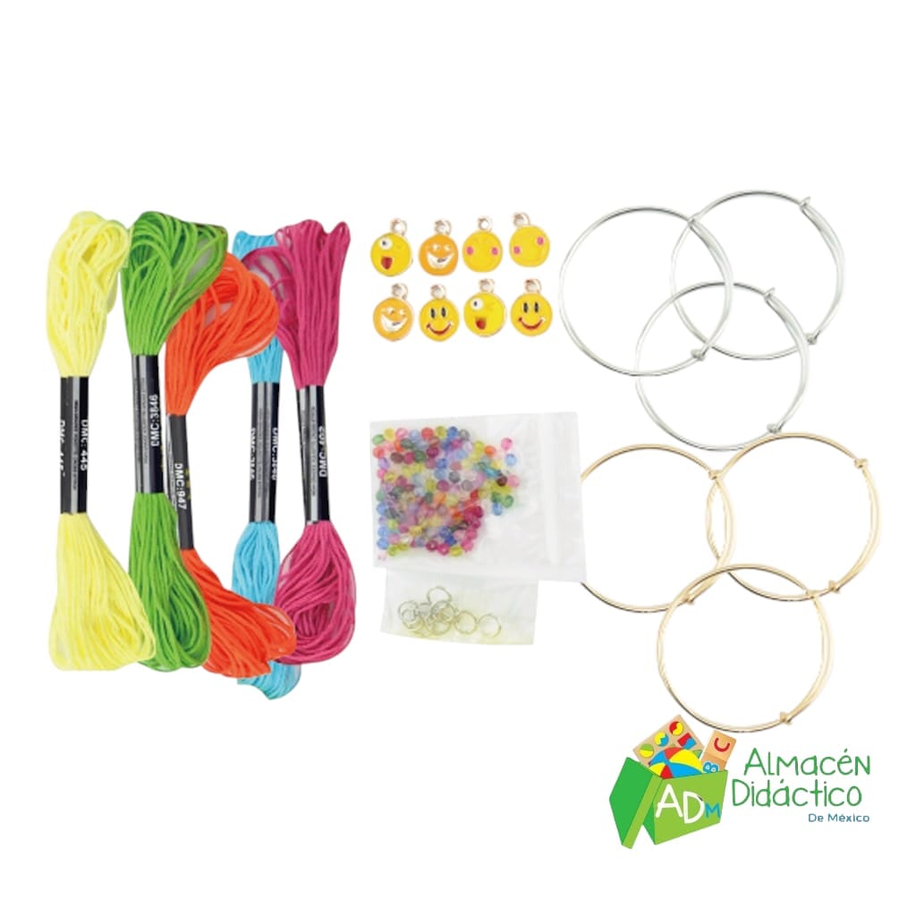 Incluye: 6 pulseras de metal, Hilo, Círculos de metal y caras (emojis) de metal/21 piezas).