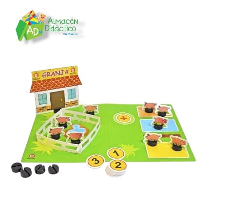 Contenido1 tablero 2 corrales, casita, 48 cerditos 48 fichas de 4.5 cm de números del 0 al 20 (dobles) y 6 con signos aritméticos,20 bases de plástico