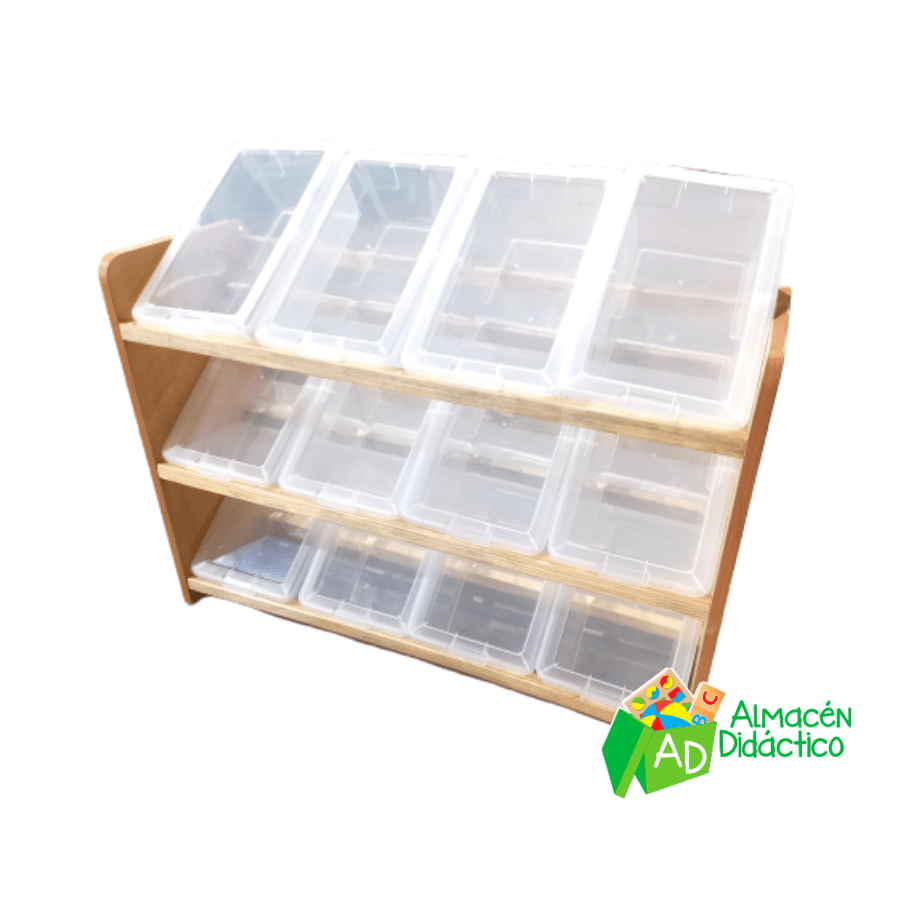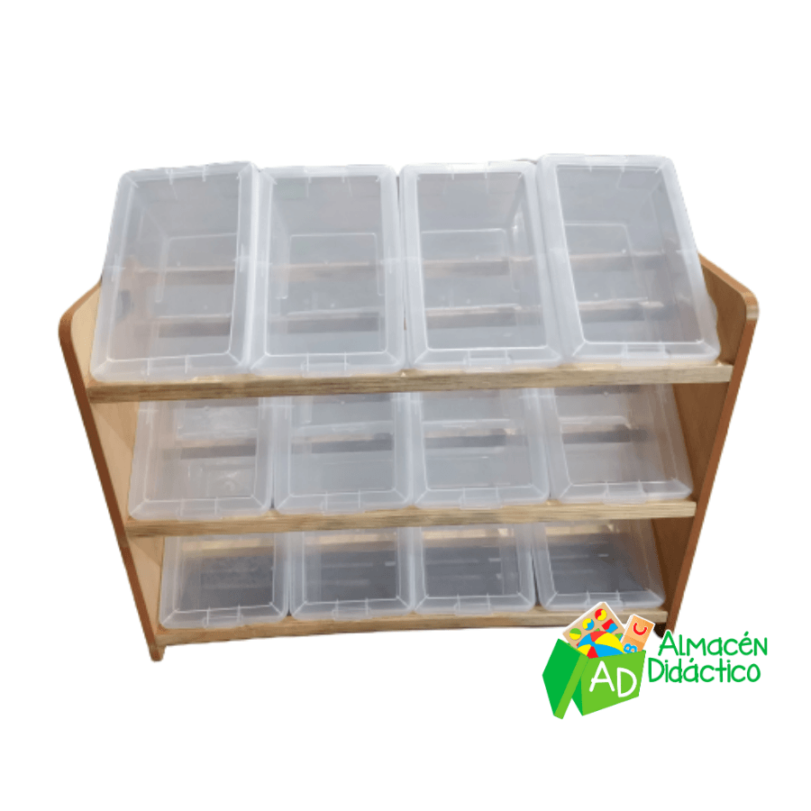 acabado en barniz, 4 regatones. Incluye 12 contenedores de plástico SIN MATERIAL TIEMPO DE ENTREGA DE 5 A 9 SEMANAS HÁBILES.