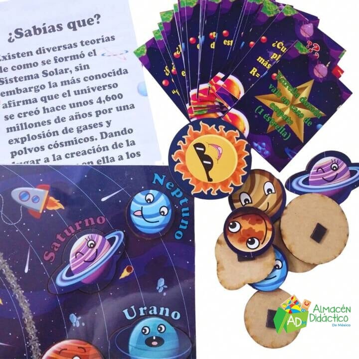 Ayuda a los niños a aprender sobre los planetas y otros cuerpos celestes de manera interactiva, permite desarrollar habilidades cognitivas como la resolución de problemas, mejora su coordinación ojo-mano y concentración.