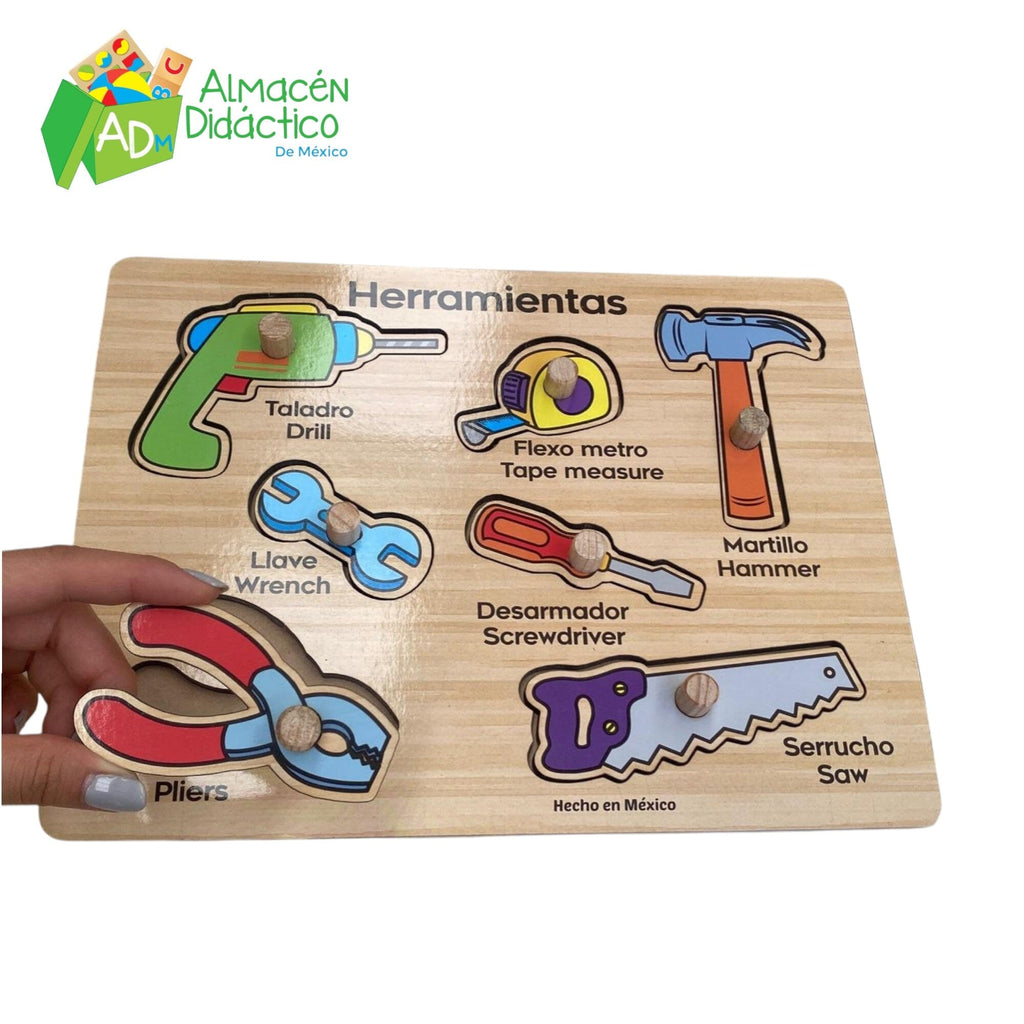 Material de madera con pija que facilitan el agarre y la soltura de la muñeca en los niños, ideales para los pequeños que comienzan a desarrollar habilidades motoras, estimulan la coordinación ojo-mano y el lenguaje.