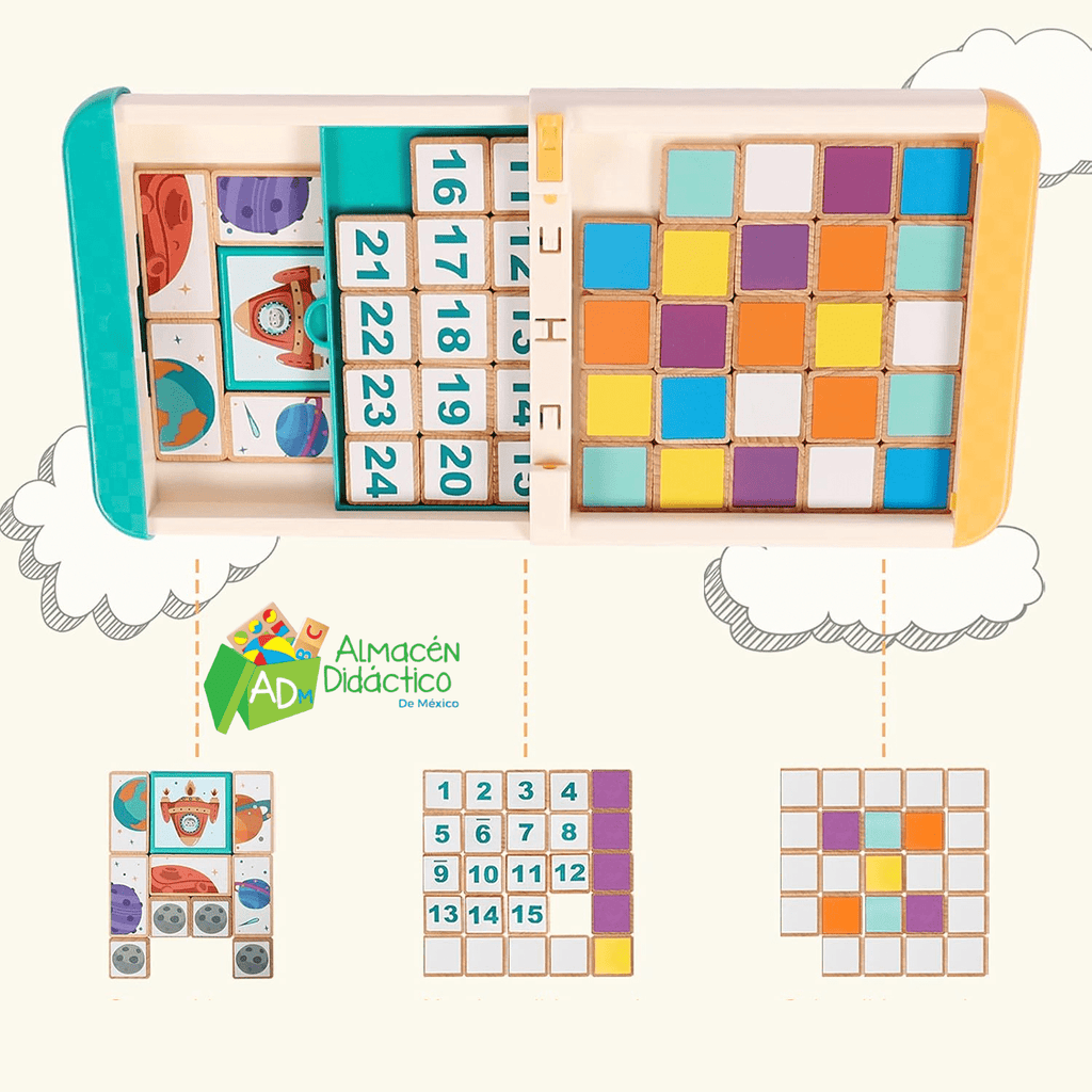 En el Juego de Carrera Lógica 3 en 1, un jugador puede ganar deslizando los bloques de madera y formando un patrón lógico, todo lo que tiene que hacer es agitar la caja para crear un nuevo patrón y comenzar el desafío. Es una diversión que acaba con el aburrimiento y que proporciona horas de diversión en forma de rompecabezas para resolver problemas.