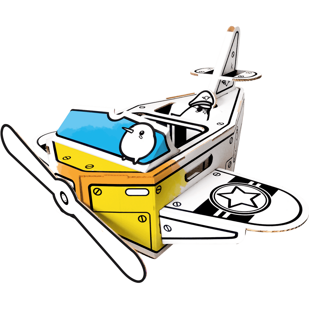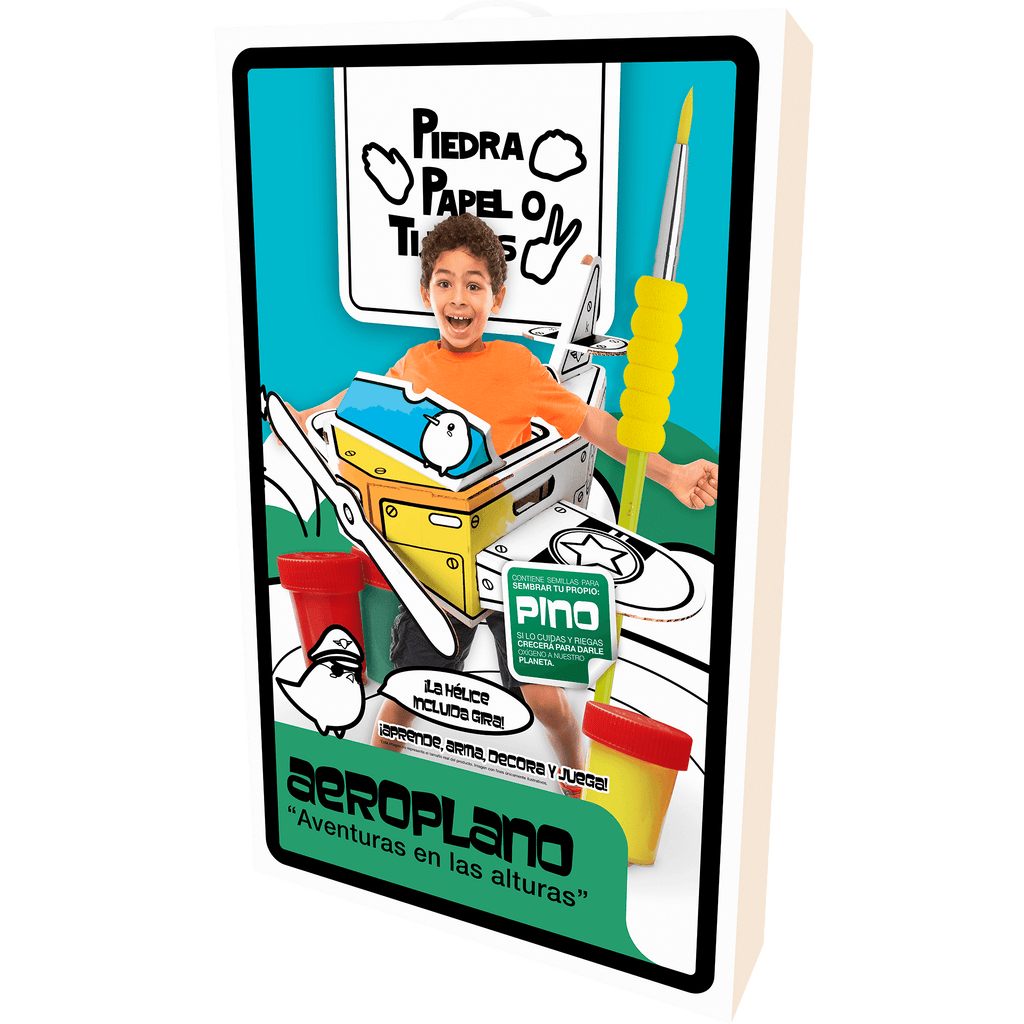 Contiene: 1 cuento 1 aeroplano para armar 1 batita para pintar 4 pinceles 12 crayones 6 pinturas 1 paquete de semillas de pino