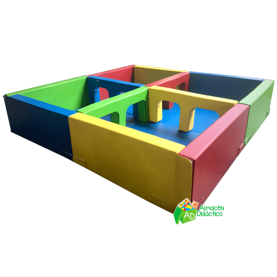 Alberca de pelotas que estimula la motricidad gruesa, ayudando a coordinar movimientos; el equilibrio, la orientación y coordinación ojo-pie-mano.